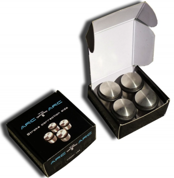 A utiliser en indoor pour remplacer les tees, 4 plots en inox, dont le poids permet de les poser sans bouger sur le Wellstroke ou sur votre Wellputt Mat.